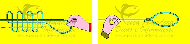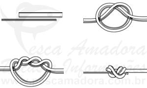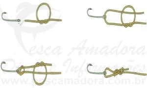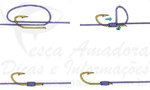 Um nó de confecção simples para atar extremidades. Talvez seja o preferido da maioria dos pescadores para essa situação, porque realmente apresenta algumas vantagens. Uma delas é a particularidade de entrar em contato com a extremidade unida (anzol, snap, girador) com duas voltas da linha, isto é, a linha passa dobrada pelo aro onde é amarrada.