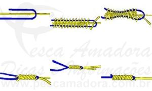 Embora seja um pouco cansativo de amarrar, este nó oferece ótima resistência. É similar a um nó de sangue normal, porém, com mais envoltórios pode impedir que a linha deslize.