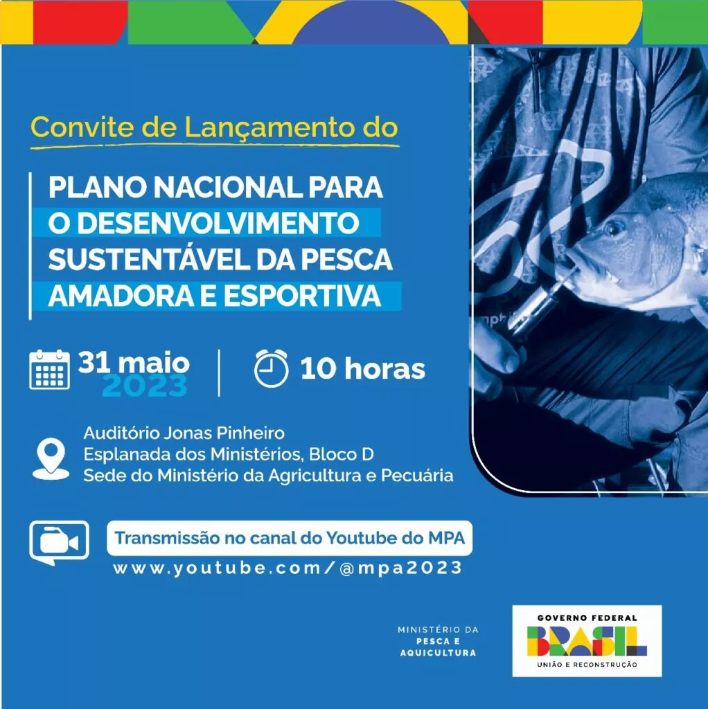 O Ministério da Pesca e Aquicultura criou um Plano Nacional para o Desenvolvimento Sustentável da Pesca Amadora e Esportiva, que será lançado no dia 31 de maio, em Brasília, na sede do Ministério da Agricultura e Pecuária. O objetivo é a formulação de políticas de governança sólidas, que estimulem o desenvolvimento sustentável do setor.